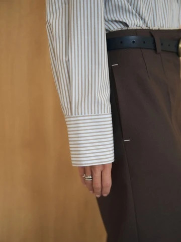 Брюки прямые с необработанным поясом, шоколадный
