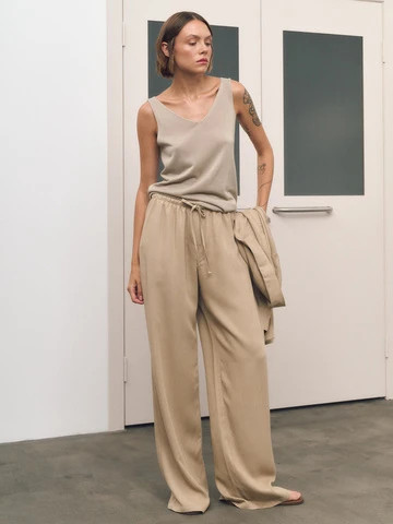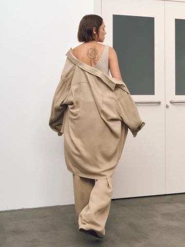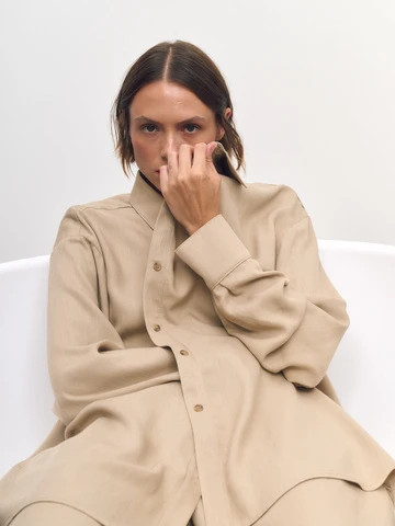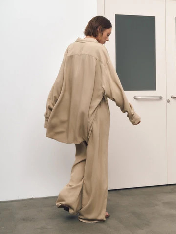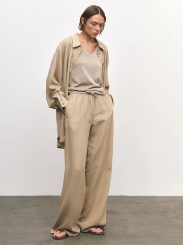 Костюм: рубашка объемного кроя+брюки, бежевый